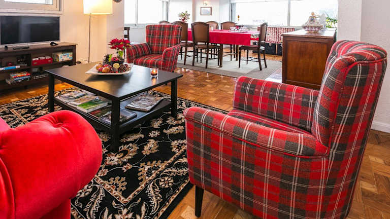 Die Ferienwohnung umfasst 5 Schlafzimmer, ein Wohnzimmer und eine voll ausgestattete Küche mit Kühlschrank und Kaffeemaschine. Zudem stehen 3 Badezimmer mit Bidet und Dusche zur Verfügung. Handtücher und Bettwäsche werden bereitgestellt.