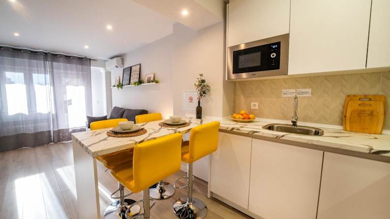 Die Apartments sind mit einer Klimaanlage ausgestattet und verfügen über eine voll ausgestattete Küche mit einem Essbereich. Es sind moderne Annehmlichkeiten wie ein Flachbild-TV, ein Kühlschrank, ein Geschirrspüler, eine Mikrowelle und eine Kaffeemaschine vorhanden. Jedes Apartment hat ein eigenes Badezimmer mit Dusche und Haartrockner.