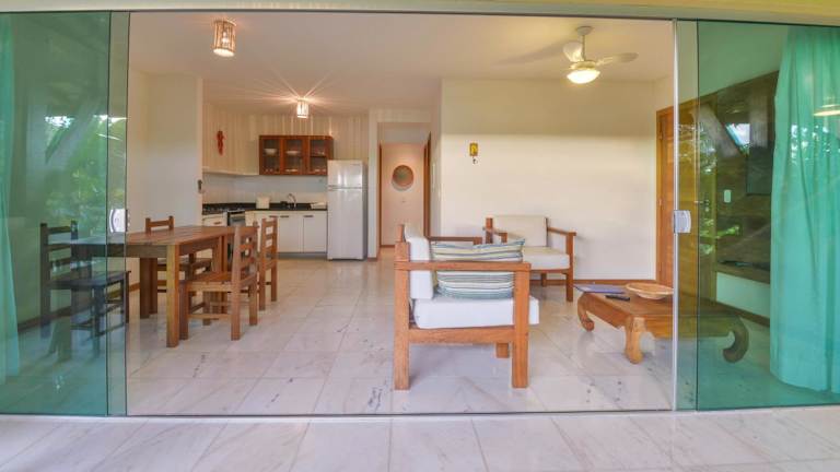Die Apartments im Apartamento 2 quartos no Imbassai Breezes sind geräumig und modern eingerichtet. Sie verfügen über eine voll ausgestattete Küche, in der Sie Ihre eigenen Mahlzeiten zubereiten können. Die honigfarbenen Holzmöbel und die cremefarbenen Möbel verleihen den Apartments eine gemütliche Atmosphäre. Durch die Glasschiebetüren haben Sie einen herrlichen Blick auf die üppigen Gärten und können die Meeresbrise genießen. Jedes Apartment verfügt über zwei Schlafzimmer, ein separates Wohnzimmer und einen Essbereich. Zur Ausstattung gehören ein LCD-TV und ein eigener Balkon.