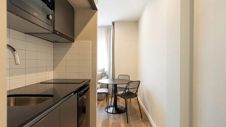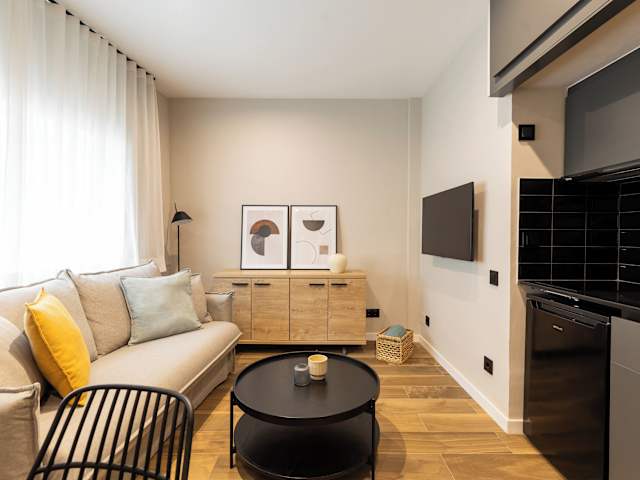 Die Apartments verfügen über klimatisierte 1-Zimmer-Apartments mit einem Doppelzimmer. Jedes Apartment bietet einen Sitzbereich mit Schlafsofa, eine moderne und gut ausgestattete Küchenzeile sowie ein eigenes Bad. Es handelt sich um Nichtraucherzimmer, und die Unterkunft bietet Annehmlichkeiten wie Bettwäsche, Handtücher und Wäsche, die nach den Richtlinien der örtlichen Behörden gewaschen werden.