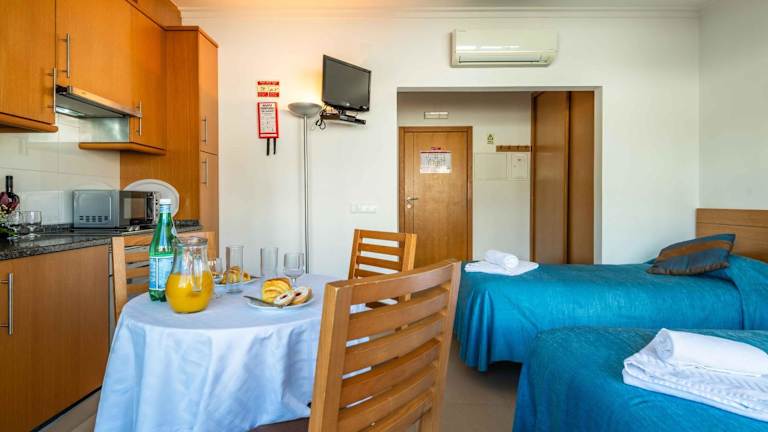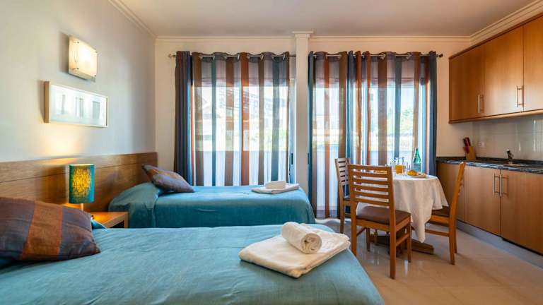 Die geräumigen Studios und Apartments sind klimatisiert und verfügen über einen Wohnbereich mit einem Schlafsofa, einem Sat-TV und einem DVD-Player. Einige Einheiten bieten einen Blick auf den Atlantik. Alle Apartments sind mit einem Küchenbereich ausgestattet, der einen Backofen, einen Kühlschrank und eine Mikrowelle umfasst. Zusätzlich sind ein Geschirrspüler und eine Waschmaschine vorhanden. Die Studios befinden sich auf der Westseite, während die Apartments nach Osten ausgerichtet sind.