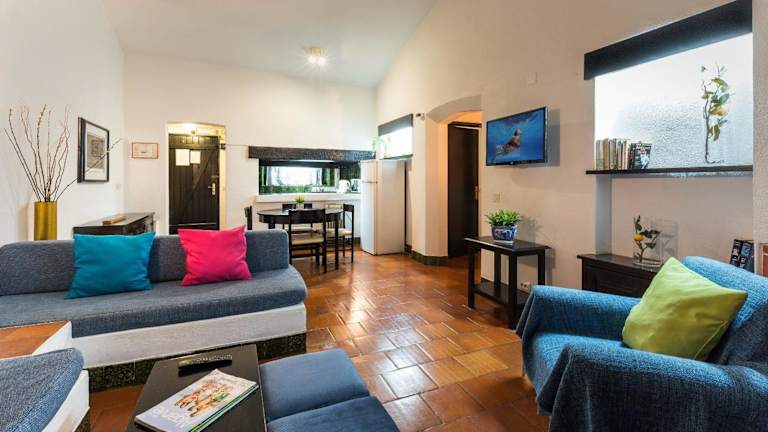 Das Apartamentos Azul Mar liegt nur 2 Gehminuten vom Strand Oura entfernt und bietet somit eine ideale Lage für SonnenanbeterInnen und StrandliebhaberInnen. Die Bar Street mit ihren Restaurants und Cafés erreichen Sie nach einem 5-minütigen Spaziergang, so dass Sie eine Vielzahl von gastronomischen Angeboten in der Nähe haben. In der Umgebung gibt es auch viele Möglichkeiten für Wassersportaktivitäten und Ausflüge in die Natur. Das Zentrum von Albufeira ist nur 3 km entfernt und bietet weitere Einkaufs- und Unterhaltungsmöglichkeiten. Der Flughafen Faro ist etwa 35 km entfernt und gut erreichbar.