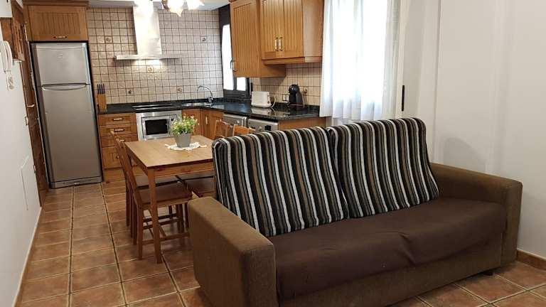 Das Apartaments Cal Noi bietet beheizte Apartments mit Dachschrägen, Holzbalken und einer ländlichen Einrichtung. Die Apartments sind in warmen Farben gestaltet und verfügen über eine Lounge mit einem Sofa sowie einem Flachbild-TV. Die Unterkunft ist für Familien geeignet und bietet Annehmlichkeiten wie eine Terrasse und Familienzimmer.