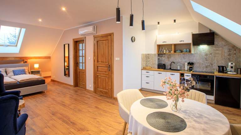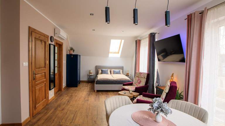 Apartamenty Art Komfort bietet eine moderne und komfortable Atmosphäre mit kostenlosem WLAN. Die Unterkunft umfasst einen Garten mit einer Terrasse, ideal zum Entspannen und Genießen des Stadtblicks.