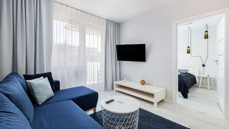 Die Unterkunft liegt 500 m vom Zentralstrand Kolobrzeg entfernt. In der unmittelbaren Umgebung befinden sich der Kolberg Bahnhof, die Strandpromenade Kolberg und das Rathaus. Der nächstgelegene Flughafen ist der Flughafen Stettin-Goleniów, in einer Entfernung von 104 km.