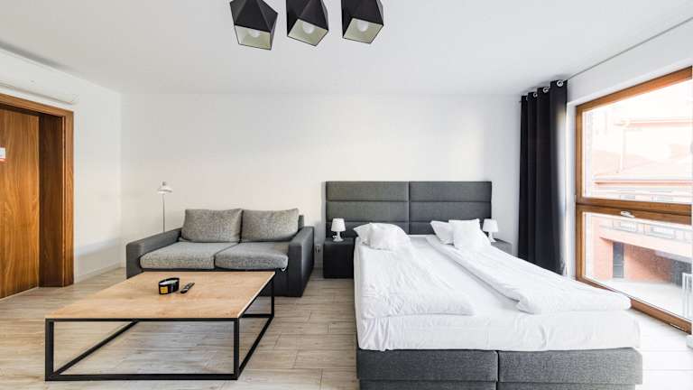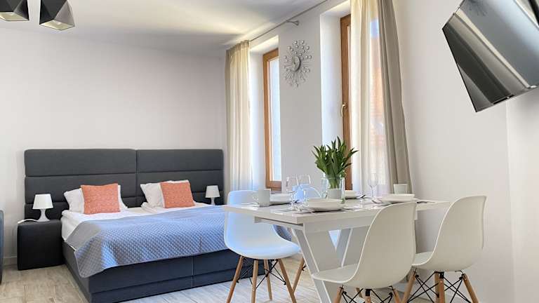 Die Unterkünfte im Apartamenty Boutique sind modern und komfortabel eingerichtet. Jedes Apartment verfügt über eine Terrasse, auf der die Gäste den Stadtblick genießen können. Zur Ausstattung gehören auch ein Flachbild-TV und ein eigenes Badezimmer mit einem Haartrockner. Die Küche ist gut ausgestattet mit einem Kühlschrank, einer Mikrowelle, einem Kochfeld und einer Kaffeemaschine, so dass die Gäste ihre eigenen Mahlzeiten zubereiten können.