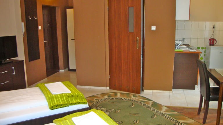 Das Apartamenty Dolna Kraków bietet komfortable Unterkünfte in einem ruhigen Viertel von Krakau. Hier können Sie in gemütlichen Apartments mit kostenfreiem WLAN übernachten und haben die Möglichkeit, Ihr Fahrzeug kostenlos auf dem Privatparkplatz abzustellen. Die Apartments sind gut ausgestattet und verfügen über eine Küchenzeile, ein eigenes Bad und einen Flachbild-TV. Die Unterkunft befindet sich in der Nähe des Messezentrums EXPO Krakow und ist nur eine kurze Fahrt von der Altstadt von Krakau entfernt. Der Hauptbahnhof und der Flughafen sind ebenfalls gut erreichbar.