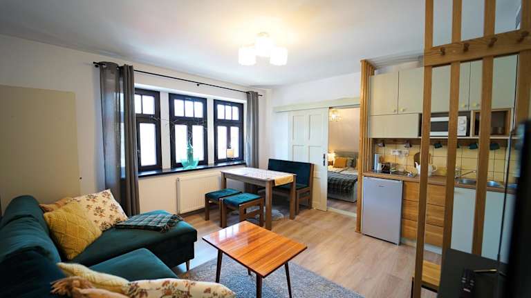 Die Unterkunft befindet sich in der Region Niederschlesien, in der Nähe von Szklarska Poręba. In der Umgebung liegen der Busbahnhof Szklarska Poręba sowie der Bahnhof Ober-Schreiberhau (Szklarska Poreba Górna). Zu den Sehenswürdigkeiten gehören der Wasserfall Szklarki und der Zackelfall, die beide 3,3 km entfernt sind. Der nächstgelegene Flughafen ist der Flughafen Nikolaus-Kopernikus Breslau, der 121 km entfernt ist.