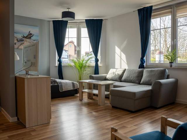 Die Unterkunft befindet sich in Mielno, 500 m vom Strand entfernt. Die Umgebung bietet Möglichkeiten zum Wandern und ist 2,4 km von der Friendship Promenade sowie 3,2 km vom Bahnhof Mielno entfernt. Weitere Sehenswürdigkeiten sind 45 km entfernt das Rathaus und der Kolberger Bahnhof. Der nächstgelegene Flughafen ist Stettin-Goleniów, 141 km entfernt.