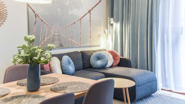 Das Apartamenty Na Wyspie - Baltic Park - Apartamenty z sypialnią i parkingiem ist eine ideale Unterkunft zur Selbstverpflegung an der Promenade von Swinemünde. Nur wenige Gehminuten vom Strand entfernt, bietet das Apartment eine geräumige Terrasse mit Gartenmöbeln und kostenfreiem WLAN. Die gut ausgestattete Küchenzeile und das moderne Badezimmer sorgen für einen komfortablen Aufenthalt. Die zentrale Lage ermöglicht es Ihnen, den Bahnhof von Swinemünde, den Park Zdrojowy und den Leuchtturm bequem zu erreichen.