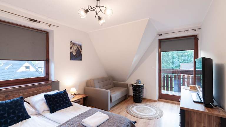 Apartamenty Rodzinne ApartZakop bietet eine moderne Ausstattung mit kostenlosem WLAN und Privatparkplätzen. Jedes Apartment verfügt über einen Balkon mit Blick auf die Berge, einen Flachbild-TV und eine gut ausgestattete Küchenzeile. Ein privates Badezimmer mit Dusche und Haartrockner steht ebenfalls zur Verfügung.