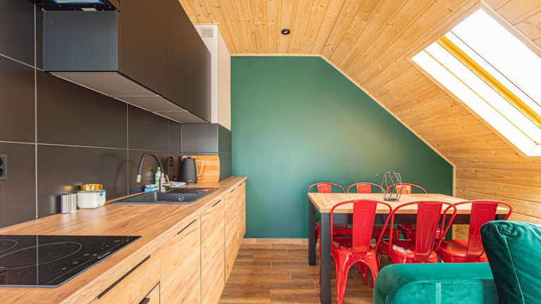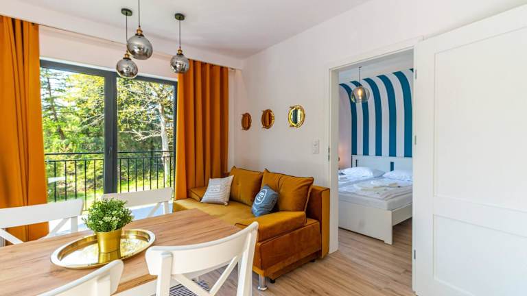 Die Unterkunft liegt in Pogorzelica in der Region Westpommern, etwa 1,5 km vom Strand Pogorzelica und 2,4 km vom Strand Niechorze entfernt. Der Flughafen Stettin-Goleniów befindet sich 83 km entfernt.