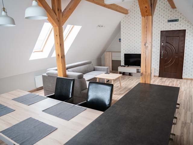 Die Unterkunft befindet sich in Ustka, in der Nähe des Strandes Ustka, des Strandes Plaża w Przewłoce und der Ustka Promenade. Der ostliche Strand Plaża Wschodnia ist nur 2,5 km entfernt, während der Aquapark Jarosławiec 29 km von der Unterkunft entfernt ist. Der Lech-Wałęsa-Flughafen Danzig ist der nächstgelegene Flughafen, etwa 124 km von der Unterkunft.