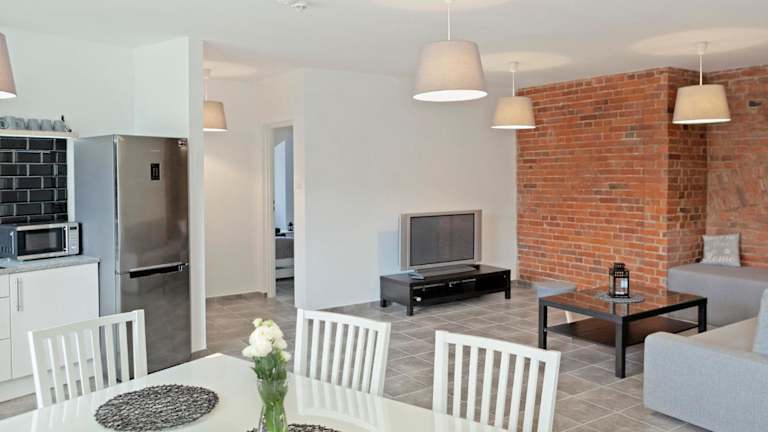 Das Apartamenty w starym browarze 1 bietet eine voll ausgestattete Küchenzeile, in der Sie Ihre eigenen Mahlzeiten zubereiten können. Alternativ finden Sie in der Umgebung eine Vielzahl von Restaurants und Cafés, in denen Sie lokale Spezialitäten genießen können.