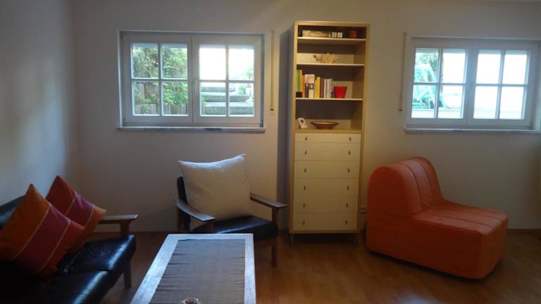 Das Appartement Schönbach bietet ein komfortables Apartment im Untergeschoss mit einem hellen Eingangsbereich. Das Apartment verfügt über ein eigenes Badezimmer mit Dusche, ein geräumiges kombiniertes Wohn- und Schlafzimmer mit einem gemütlichen Doppelbett und einem Fernseher sowie eine voll ausgestattete Küche. Die Küche ist mit einem Backofen, einer Mikrowelle und einem Toaster ausgestattet, so dass Sie sich problemlos selbst verpflegen können. Handtücher und Bettwäsche werden zur Verfügung gestellt.