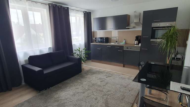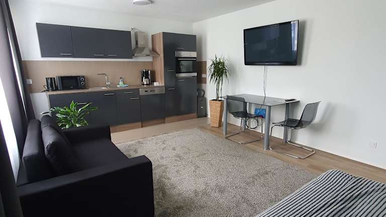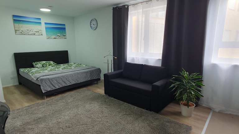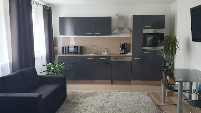 Die Ferienwohnung besteht aus einem Schlafzimmer, einem Wohnzimmer, einer voll ausgestatteten Küche mit Kühlschrank und Kaffeemaschine sowie einem Badezimmer mit Dusche und kostenlosen Pflegeprodukten. Handtücher und Bettwäsche werden bereitgestellt. Die Zimmer sind schallisoliert und es stehen Nichtraucherzimmer zur Verfügung. Es wird darauf geachtet, dass die Unterkunft zwischen den Aufenthalten desinfiziert wird.