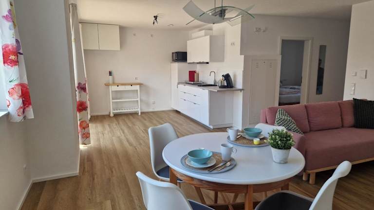 Die Apartements WaWohnen befinden sich in einem ruhigen Wohngebiet, 29 km entfernt von Hauptbahnhof Ulm und 30 km von Ulmer Münster. Der Flughafen Memmingen ist 36 km von der Unterkunft entfernt und die Messe Ulm liegt ebenfalls in der Nähe mit einer Distanz von 31 km.