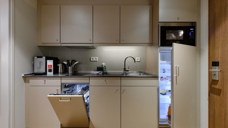 Das Aparthotel Adagio Frankfurt City Messe ist mit bequemen und geschmackvoll eingerichteten Studio- und Zwei-Zimmer-Apartments mit jeweils eigener Küche ausgestattet. Die Preise sind so gestaffelt, dass Aufenthalte ab vier Nächten besonders attraktiv sind.
