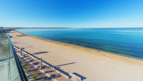 Das Aparthotel Fontanellas Playa liegt direkt am Strand von Playa de Palma und bietet einen herrlichen Blick auf das Meer. Der Strand ist nur durch die Uferpromenade vom Hotel getrennt. In der Umgebung finden Sie zahlreiche Einkaufsmöglichkeiten und Restaurants, die in nur 15 Gehminuten erreichbar sind. Der Flughafen Palma de Mallorca ist nur 3 km entfernt.