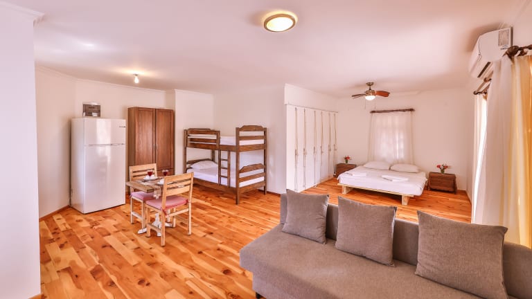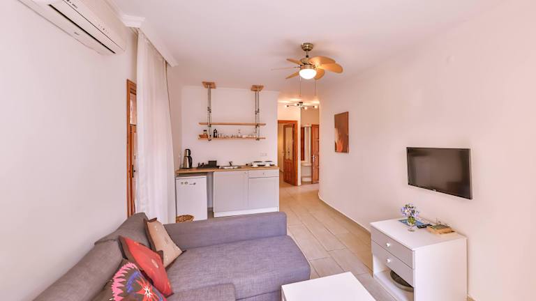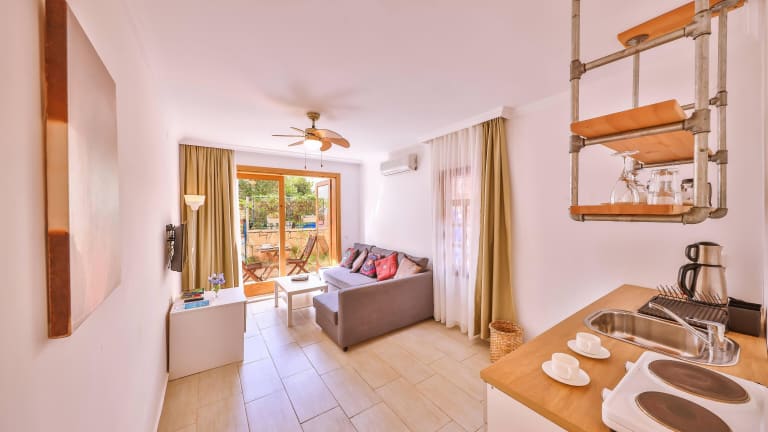 Die Apartments im Elea & Kaputas Hotel sind modern und komfortabel eingerichtet und bieten Ihnen allen Komfort, den Sie für einen angenehmen Aufenthalt benötigen. Jedes Apartment verfügt über einen eigenen Balkon mit Meerblick, wo Sie die herrliche Aussicht genießen können. Zur Ausstattung gehören ein LCD-Sat-TV, kostenloses WLAN und eine moderne Küche, in der Sie Ihre eigenen Mahlzeiten zubereiten können. Alle Apartments sind voll klimatisiert und verfügen über ein eigenes Badezimmer.