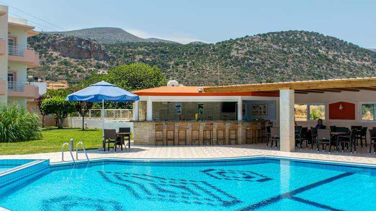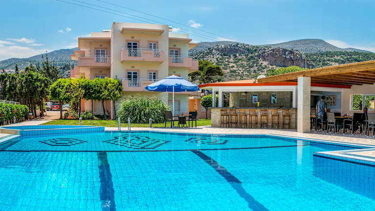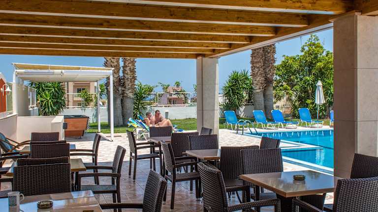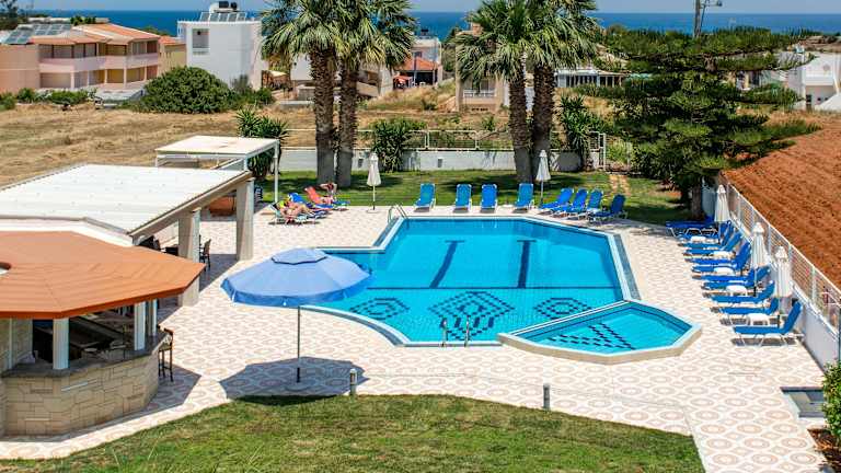Die Manolis Apartments sind eine ideale Wahl für alle, die einen erholsamen und angenehmen Aufenthalt in einer familiären Atmosphäre suchen. Die gut gestalteten Apartments bieten eine voll ausgestattete Küchenzeile und einen eigenen Balkon. Der Poolbereich und der Spielbereich für Kinder sorgen für Spaß und Entspannung. Das Hotel liegt in der Nähe des Strandes und bietet eine gute Anbindung an öffentliche Verkehrsmittel.