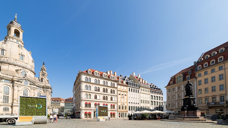 Das Aparthotel Neumarkt liegt im Herzen der Dresdner Altstadt, nur 50 m von der beeindruckenden Frauenkirche entfernt. In unmittelbarer Nähe befinden sich viele weitere berühmte Sehenswürdigkeiten wie der Zwinger, das Dresdner Schloss und die Semperoper. Die öffentlichen Verkehrsmittel sind nur etwa 500 m entfernt, sodass Sie bequem die verschiedenen Stadtteile von Dresden erkunden können. Auch die Elbterrassen und die Altmarkt Galerie sind in der Nähe. Der Große Garten ist zu Fuß in etwa 15 Minuten erreichbar.