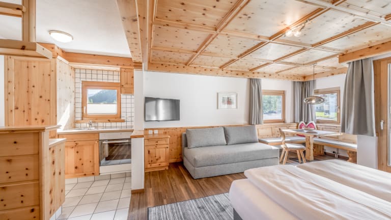 Genießen Sie heimelige und ruhige Appart-Studios mitten im Schweizer Bergdorf Samnaun im Engadin. Sie erreichen in kürzester Zeit die blühenden Almwiesen, den SPA-Bereich mit Hallenbad des Partnerhotels (unterirdisch verbunden), die Samnauner zollfreie Shoppingmeile oder die ZEGG Restaurants für ein abendliches Dinner. Buchen Sie unsere Studios als „Ferienwohnung“ ohne zusätzlichen Service oder als großzügiges Zimmer mit Hotelservice.