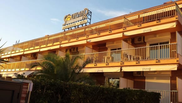 Das Aparthotel Solifemar in Castelldefels bietet geräumige Zimmer und Apartments mit Balkonen und Strandblick. Die Unterkünfte sind klimatisiert und mit Sat-TV ausgestattet. Das Hotel verfügt über ein Restaurant mit Bar und eine große Terrasse, auf der Sie Getränke und Speisen genießen können. Wassersportmöglichkeiten sind in der Nähe verfügbar und Tennisplätze sind ebenfalls leicht zu erreichen. Das Hotel bietet einen Privatparkplatz und ist nur eine kurze Fahrt vom Flughafen Barcelona entfernt. Der Bahnhof Castelldefels ist ebenfalls in der Nähe, von wo aus Sie bequem Barcelona und Sitges erreichen können. Ein Bus hält in der Nähe des Hotels und bringt Sie nach Barcelona und Castelldefels.