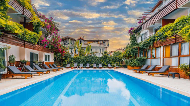 Das Ten Apart Hotel in Fethiye bietet Urlaubern eine komfortable Unterkunft mit klimatisierten Apartments, einer Küche und einem Pool. Das Hotel liegt nur 5 Gehminuten vom Strand von Çalış entfernt und bietet eine entspannte Atmosphäre. Genießen Sie regionale Spezialitäten im hoteleigenen Restaurant und erkunden Sie die Umgebung mit Hilfe des organisierten Ausflugsprogramms.