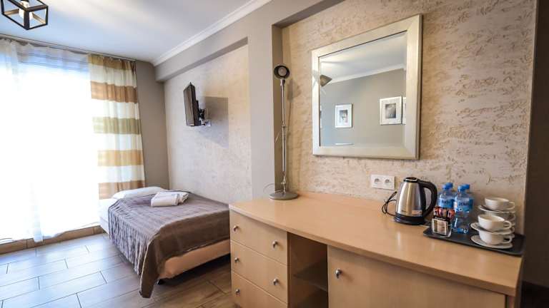 Das Aparthotel WADOWICE & Hostel GENERY bietet verschiedene Unterkunftsmöglichkeiten, darunter Zimmer mit Terrasse. Jedes Zimmer ist mit einem Wasserkocher und einem Kühlschrank ausgestattet, um den Gästen den Aufenthalt so angenehm wie möglich zu gestalten. Zudem gibt es eine Gemeinschaftsküche, in der die Gäste ihre eigenen Mahlzeiten zubereiten können.