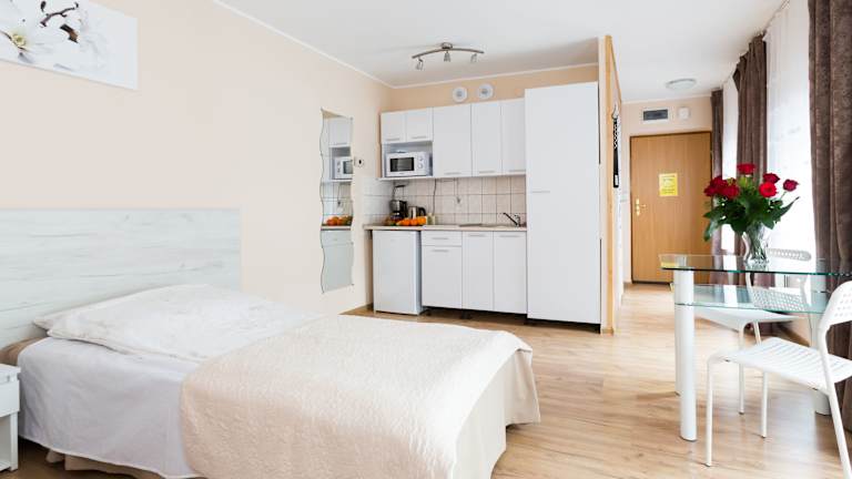Die Apartments verfügen über einen Flachbild-Sat-TV, einen Sitzbereich sowie eine voll ausgestattete Küchenzeile mit Mikrowelle, Kühlschrank und Tee- sowie Kaffeezubehör. Das eigene Badezimmer ist mit einer Dusche und einem Haartrockner ausgestattet.