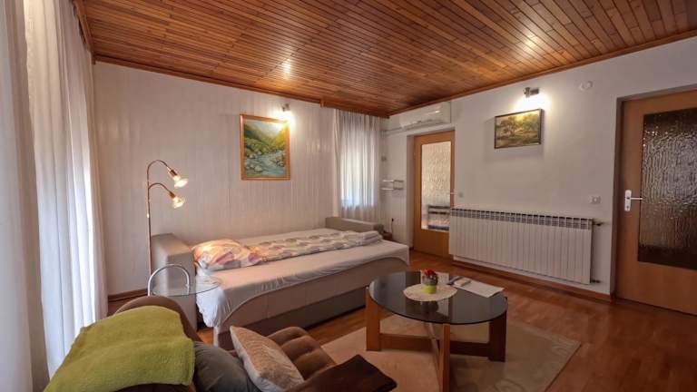 Das Apartment im Apartma Mika verfügt über 2 Schlafzimmer, ein Wohnzimmer und eine voll ausgestattete Küche. Ein Balkon bietet einen herrlichen Blick auf die Stadt und die klimatisierte Unterkunft sorgt für angenehme Temperaturen zu jeder Jahreszeit. Ein Flachbild-Sat-TV steht zur Verfügung und Handtücher und Bettwäsche werden gestellt. Das Bad ist mit einem Bidet und einer Dusche ausgestattet.
