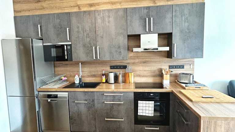 Das Apartment im Slunný luxusní byt na horách verfügt über ein separates Schlafzimmer, in dem Sie sich ausruhen und entspannen können. Die voll ausgestattete Küche bietet Ihnen die Möglichkeit, Ihre eigenen Mahlzeiten zuzubereiten und den Komfort eines eigenen Zuhauses zu genießen. Das Badezimmer ist modern und funktional ausgestattet.