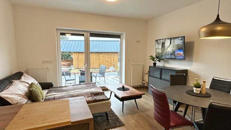 Die Umgebung des Slunný luxusní byt na horách bietet zahlreiche Möglichkeiten für sportliche Aktivitäten und Freizeitgestaltung. Erkunden Sie die Natur bei Wanderungen oder Radtouren und genießen Sie die frische Luft und die atemberaubende Landschaft. Entspannen Sie sich auf der Terrasse und genießen Sie die Ruhe und den Frieden dieser idyllischen Umgebung.