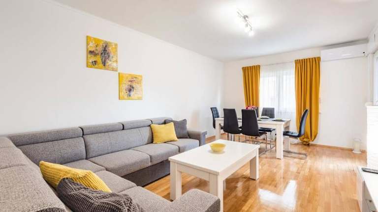 Das Apartman Angie bietet ein geräumiges und komfortables Apartment mit zwei Schlafzimmern. Das klimatisierte Apartment verfügt über ein Wohnzimmer, eine voll ausgestattete Küche mit Kühlschrank und Kaffeemaschine sowie ein Badezimmer mit Dusche und kostenlosen Pflegeprodukten. Handtücher und Bettwäsche werden gestellt, um Ihren Aufenthalt so angenehm wie möglich zu gestalten. Genießen Sie den Balkon mit Blick auf den Garten und nutzen Sie das kostenfreie WLAN in allen Bereichen.