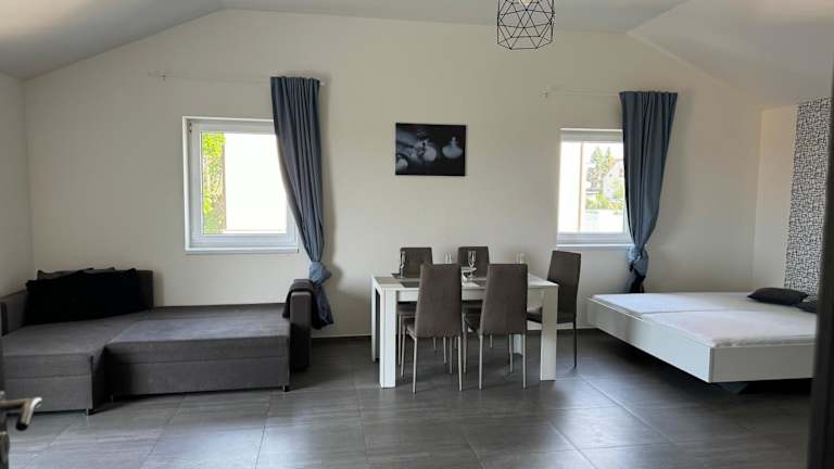Das Apartmán byt 74m2 klid příroda pro rodinu bietet eine ruhige und naturnahe Umgebung, ideal für Spaziergänge und Erkundungen. In der Nähe gibt es auch zahlreiche Möglichkeiten für sportliche Aktivitäten wie Radfahren oder Wandern.