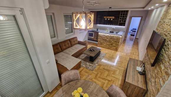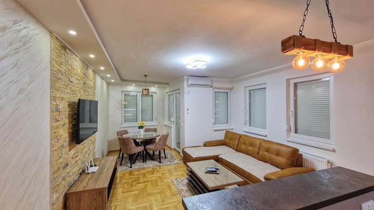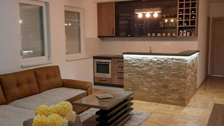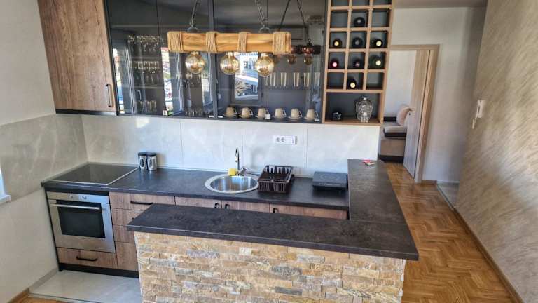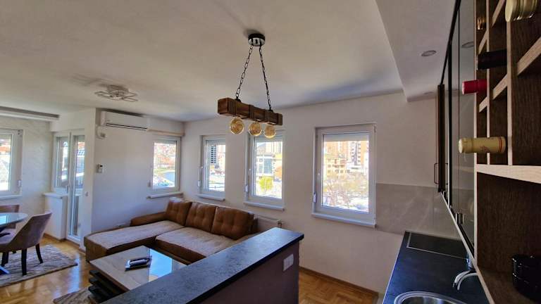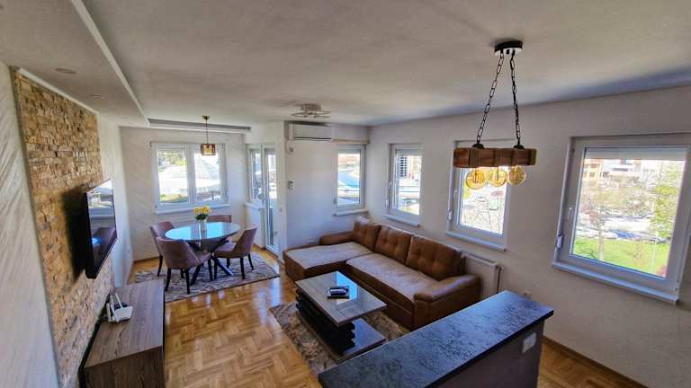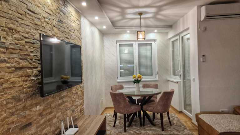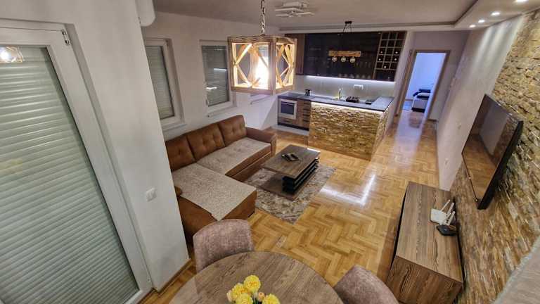Das Apartment im Apartman Dionis verfügt über 2 Schlafzimmer, ein geräumiges Wohnzimmer und eine gut ausgestattete Küche. Die moderne Einrichtung und der Flachbild-TV sorgen für Gemütlichkeit und Unterhaltung. Das Badezimmer ist mit einer Dusche ausgestattet und Handtücher und Bettwäsche stehen im Apartment zur Verfügung. Die Terrasse bietet einen schönen Blick auf die Stadt.