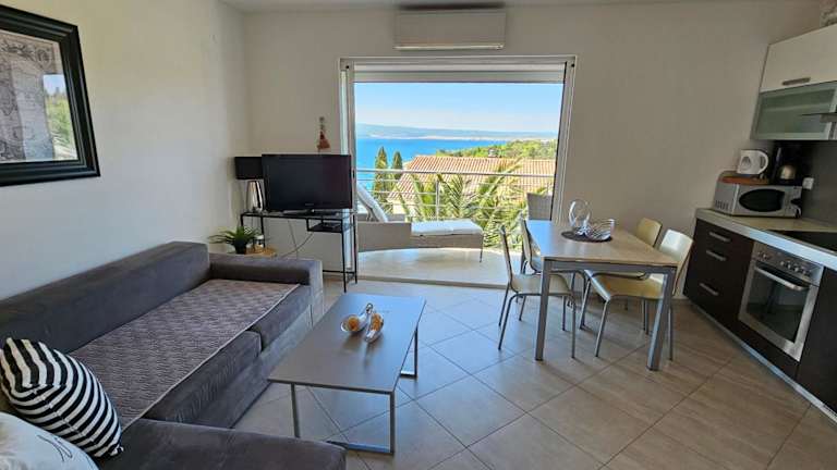 Apartman Doris bietet Übernachtungsmöglichkeiten in einer Ferienwohnung mit Meerblick. Die Unterkunft zeichnet sich durch einen Balkon sowie eine Allgemeinbereich mit Garten aus. Zudem stehen Gäste ein kostenloser Privatparkplatz und die Möglichkeit zur Nutzung von WLAN zur Verfügung. Es sind keine Feiern erlaubt, und die Unterkunft wird von einem privaten Gastgeber betrieben.