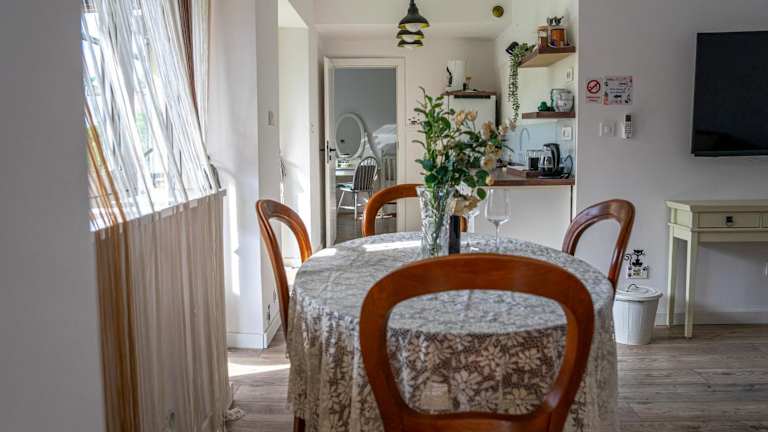 Die Ferienwohnung verfügt über Bettwäsche, Handtücher, einen Flachbild-TV mit Satellitenkanälen, einen Essbereich, eine voll ausgestattete Küche sowie eine Terrasse mit Gartenblick.