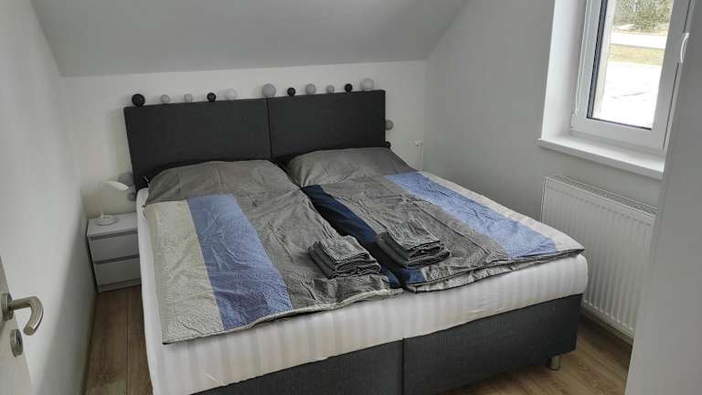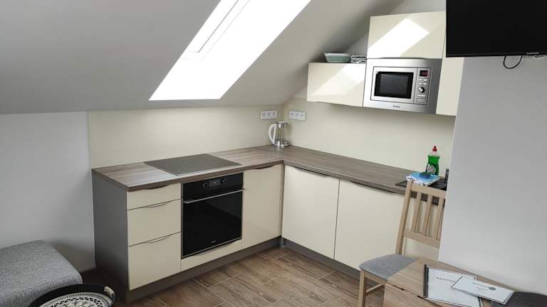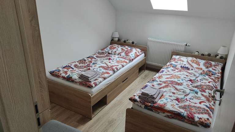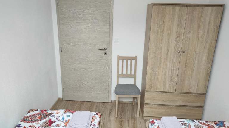 Das Privatzimmer umfasst zwei Schlafzimmer, ein Wohnzimmer und eine voll ausgestattete Küche mit Kühlschrank und Wasserkocher. Es gibt ein Badezimmer mit Dusche und Haartrockner. Handtücher und Bettwäsche sind ebenfalls vorhanden.