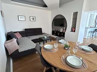 Apartman Gaby ist eine Ferienwohnung, die Reisenden eine komfortable Unterbringung mit einem Balkon und Gartenblick bietet. Sie wird von einem privaten Gastgeber geführt und verfügt über Zugang zu einer Terrasse sowie kostenlosem Privatparkplatz und WLAN. Die Unterkunft ist für Gäste ab einem Mindestalter von 18 Jahren zugänglich, und Haustiere sind nicht gestattet.