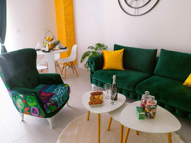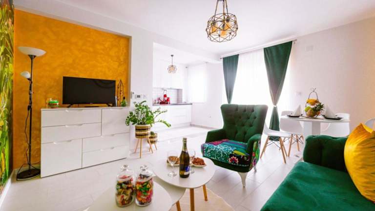 Das Apartman GREEN ist ein klimatisiertes Apartment mit einem Schlafzimmer, das allen Komfort bietet, den Sie für einen angenehmen Aufenthalt benötigen. Das Apartment verfügt über einen Flachbild-TV und ein gemütliches Wohnzimmer, in dem Sie sich entspannen können. Die Küche ist mit einer Minibar ausgestattet, sodass Sie Ihre eigenen Mahlzeiten zubereiten können.