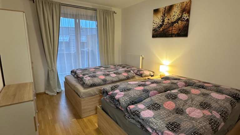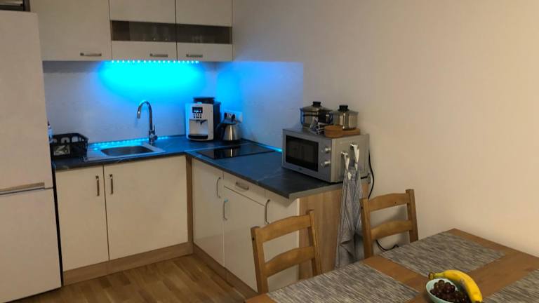 Die Ferienwohnung besteht aus einem Schlafzimmer, einem Wohnzimmer und einer voll ausgestatteten Küche mit Kühlschrank und Kaffeemaschine. Zudem verfügt sie über ein Badezimmer mit einer Dusche und kostenlosen Pflegeprodukten. Handtücher und Bettwäsche werden bereitgestellt.