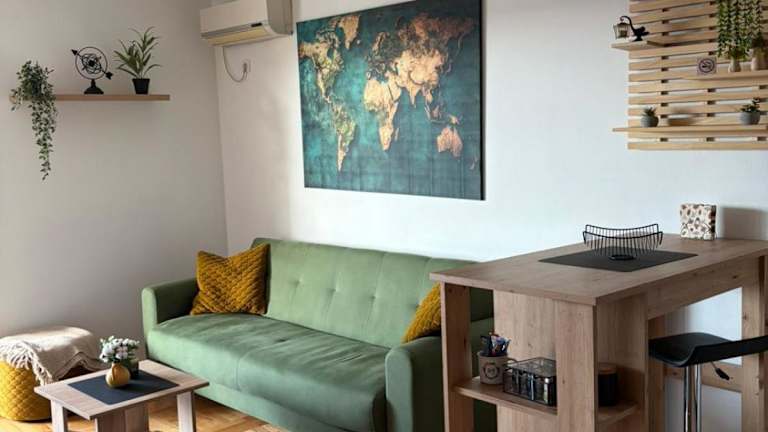 Das Apartman *Joy* befindet sich in Osijek, in der Nähe des Stadions Gradski Vrt und des Museums von Slawonien. Die Lage ist ideal für Aktivitäten wie Angeln, Radfahren und Tennis. Die Umgebung bietet auch viele kulturelle Attraktionen wie das Museum der Schönen Künste in Osijek. Der Naturpark Kopački Rit ist ebenfalls einen Besuch wert. Der Flughafen Osijek ist nur 12 km entfernt, was die Anreise zum und vom Apartment sehr bequem macht.