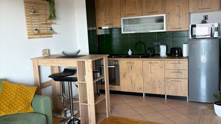 Das Apartment verfügt über eine voll ausgestattete Küche mit einem Kühlschrank und einem Geschirrspüler, so dass Sie Ihre Mahlzeiten bequem zubereiten können. Es gibt auch Restaurants in der Nähe, falls Sie lieber auswärts essen möchten.