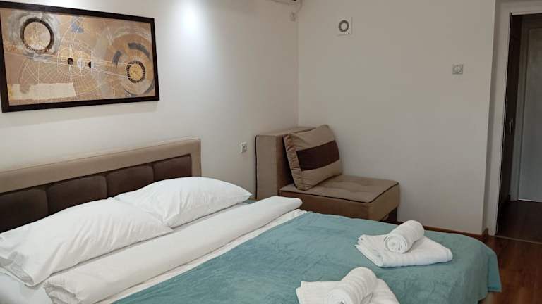 Das Apartman Leon Lux verfügt über ein Schlafzimmer, ein Badezimmer, einen Essbereich und eine voll ausgestattete Küche. Das Apartment ist komfortabel eingerichtet und bietet alle Annehmlichkeiten, die Sie für einen angenehmen Aufenthalt benötigen. Bettwäsche und Handtücher werden gestellt und ein Flachbild-TV sorgt für Unterhaltung. Die Klimaanlage sorgt für eine angenehme Raumtemperatur, und die Terrasse bietet einen schönen Blick auf die Stadt.