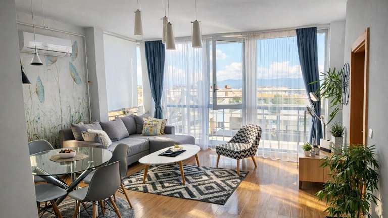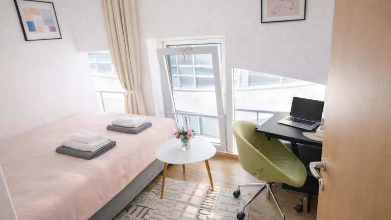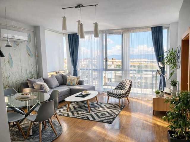 Die Ferienwohnung bietet zwei Schlafzimmer, ein Wohnzimmer, einen Essbereich sowie eine voll ausgestattete Küche mit Kühlschrank. Zur Ausstattung gehören ein Flachbild-Satelliten-TV, Klimaanlage, Handtücher und Bettwäsche. Haustiere sind erlaubt, und ein Babybett ist auf Anfrage verfügbar.