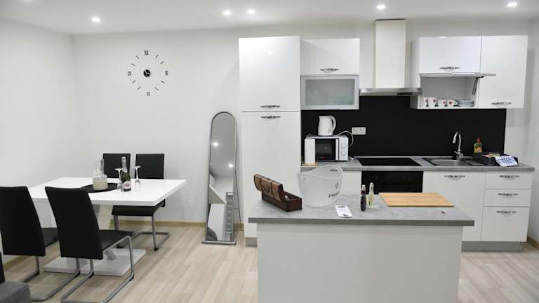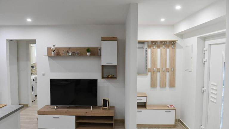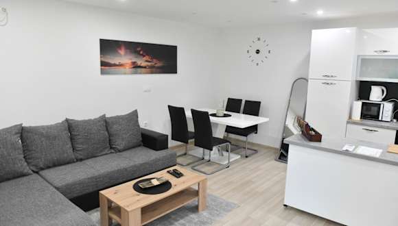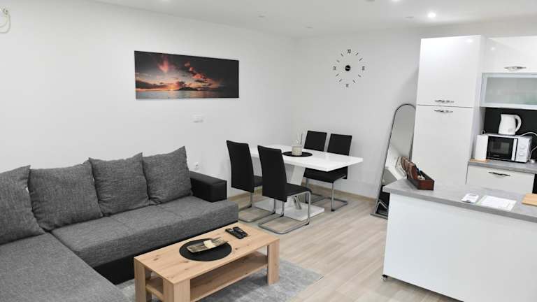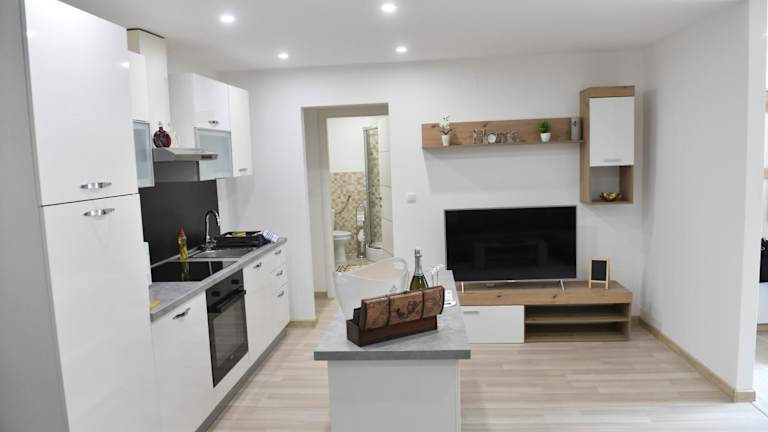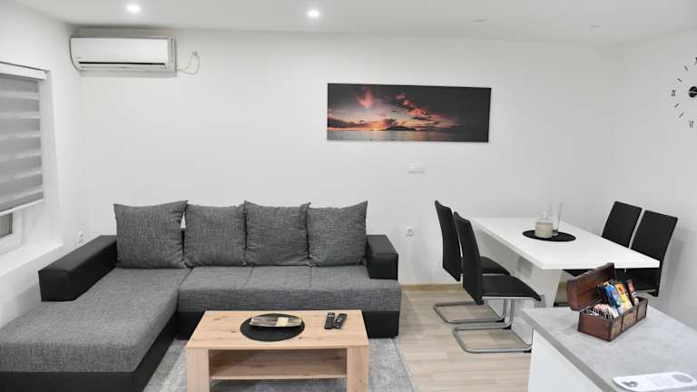 Das klimatisierte Apartment im Apartman Lucia verfügt über ein gemütliches Schlafzimmer mit komfortablen Betten für eine erholsame Nacht. Das Wohnzimmer ist der ideale Ort, um sich nach einem langen Tag zu entspannen und einen Film auf dem Flachbild-Sat-TV zu schauen. Die voll ausgestattete Küche bietet alles, was Sie für die Zubereitung Ihrer Mahlzeiten benötigen, einschließlich eines Kühlschranks. Der Essbereich lädt zum gemeinsamen Essen ein. Handtücher und Bettwäsche werden im Apartment gestellt, so dass Sie sich um nichts kümmern müssen.