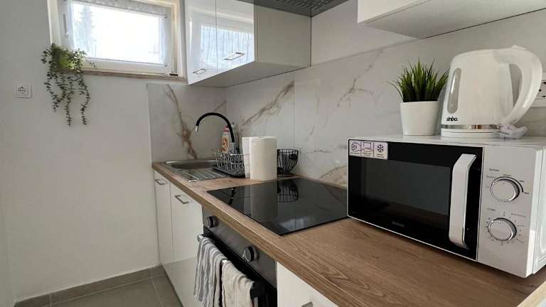 Die Ferienwohnung im Apartman Maestral verfügt über ein Schlafzimmer, ein Wohnzimmer, eine Küche, einen Flachbild-TV und Klimaanlage. Ein Balkon steht ebenfalls zur Verfügung. Die Unterkunft bietet kostenloses WLAN und eine Terrasse, sowie einen kostenlosen Privatparkplatz.