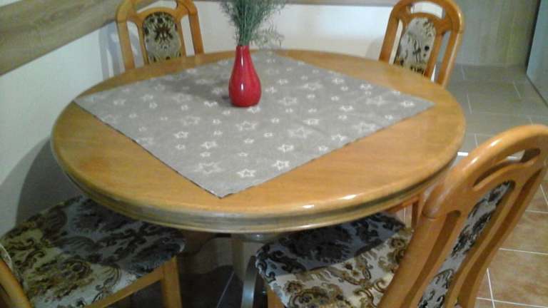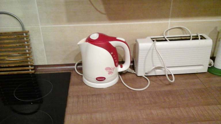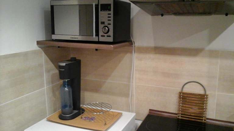 Die Ferienwohnung umfasst zwei Schlafzimmer, ein Wohnzimmer und eine voll ausgestattete Küche mit Kühlschrank und Kaffeemaschine. Das Badezimmer ist mit einem Bidet und einer Dusche ausgestattet. Handtücher und Bettwäsche werden bereitgestellt.